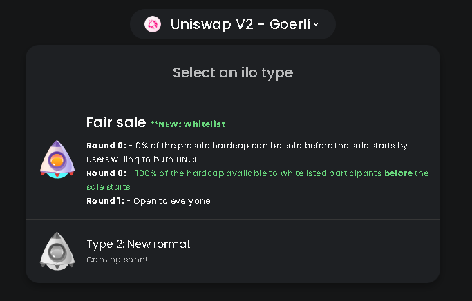 Afer that, you will be asked which blockchain and dex you want to create your ILO on.&#x20;