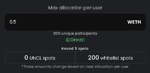 **Note:** despite the UI displaying "UNCL spots", this can be ignored as the UNCL reservation is no longer a working feature. Right now round 0 supports only whitelist spots.
