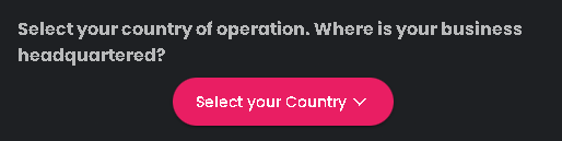 Next step is selecting your country of operation.